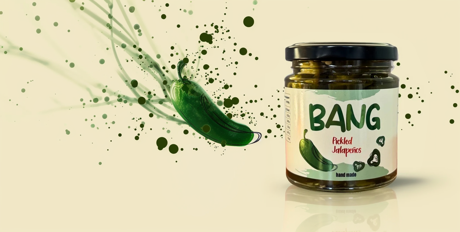 Bold, flavourful, and handmade in Amsterdam. BANG pickled jalapeño slices are the perfect addition to any dish.