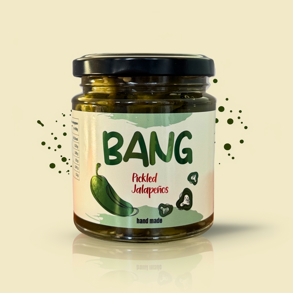 Bold, flavourful, and handmade in Amsterdam. BANG pickled jalapeño slices are the perfect addition to any dish.
